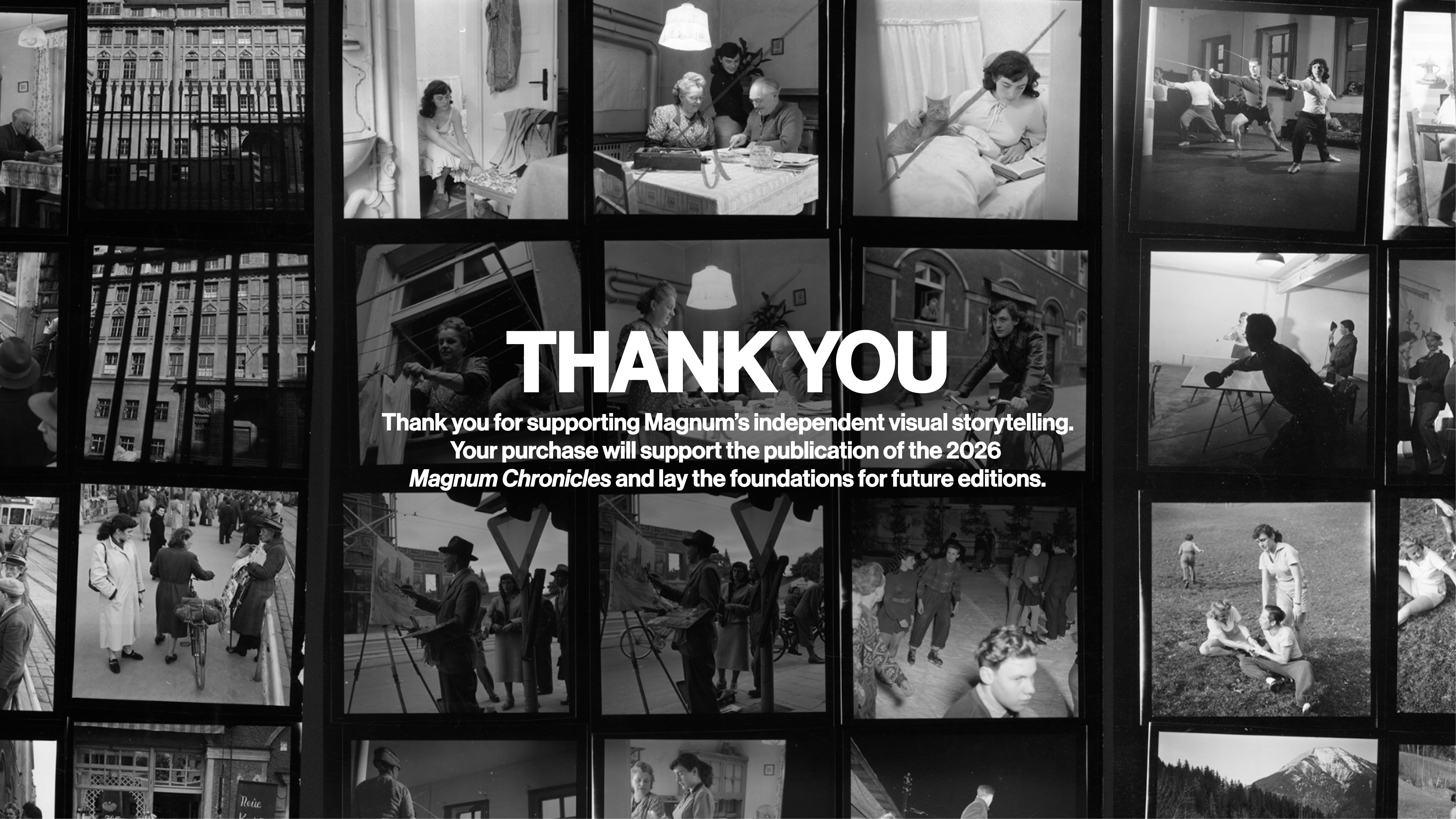 Disclaimer: Images shown are for illustrative purposes only. Final product specifications and contents are subject to change. Magnum Photos is not a foundation or non-profit organisation. Purchases made at any Magnum Chronicles tier constitute the purchase of Magnum products and are not tax deductible.