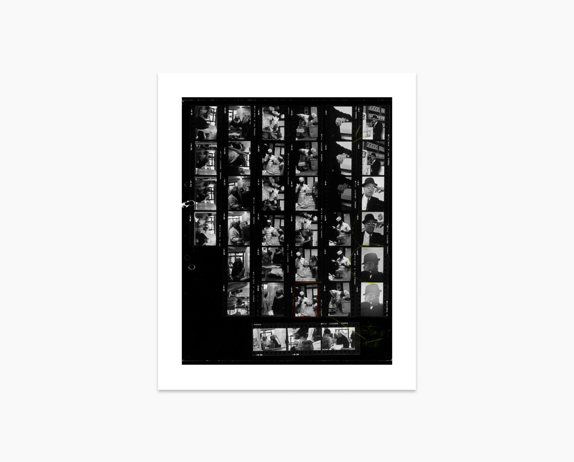 Seeing the scene through the eyes of the photographer, each frame of a contact sheet provides an insight into how their mind works when capturing a shot. Then, the edit marks come in, layered and superimposed, showing how the image choices were honed and refined with returns to the sheet.