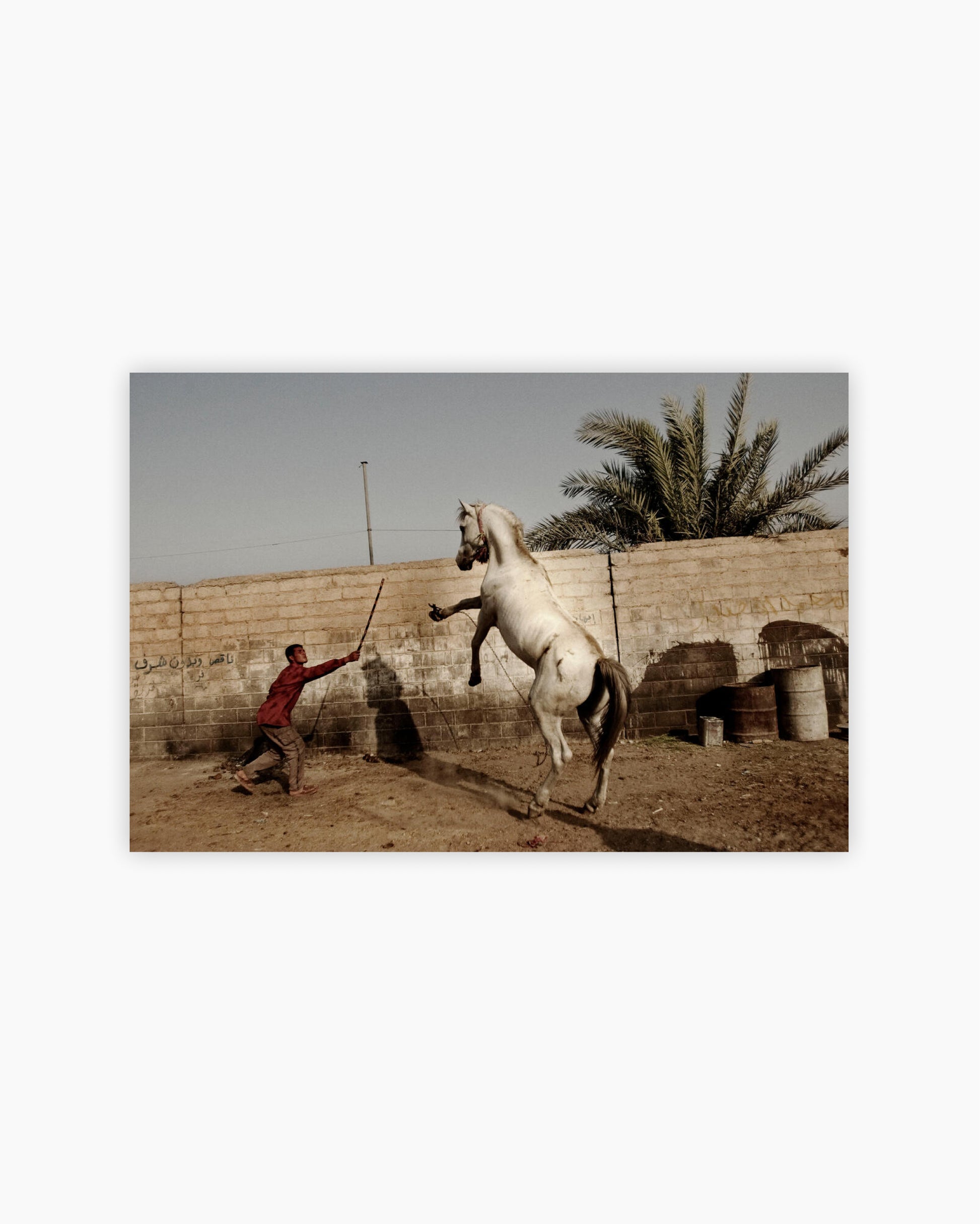 Fine Print: A man tries to tame a horse. Baghdad, Iraq, 2004