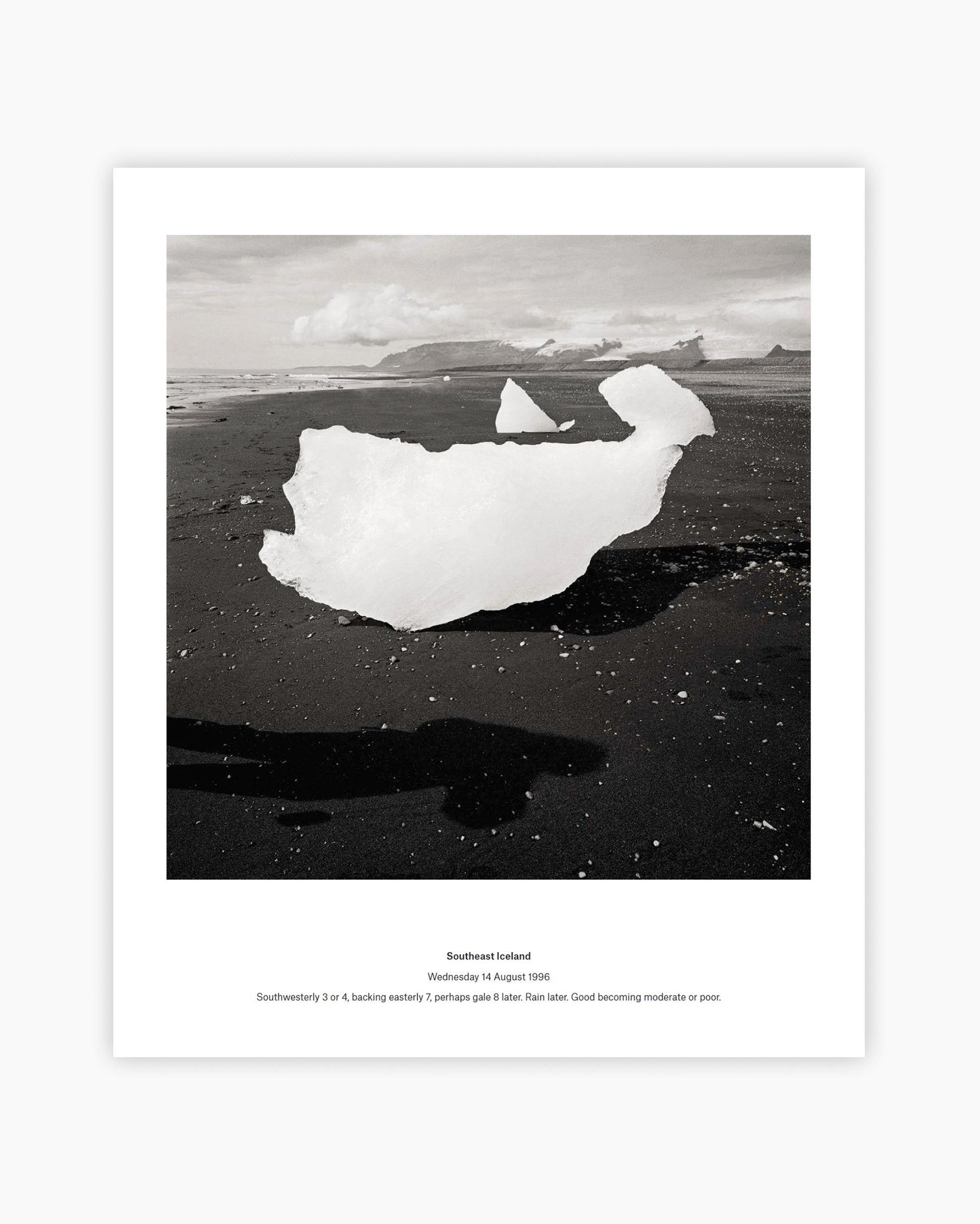 Fine Print: Southeast Iceland. Wednesday 14 August 1996. Southwesterly 3 or 4, backing easterly 7, perhaps gale 8 later. Rain later. Good becoming moderate or poor.