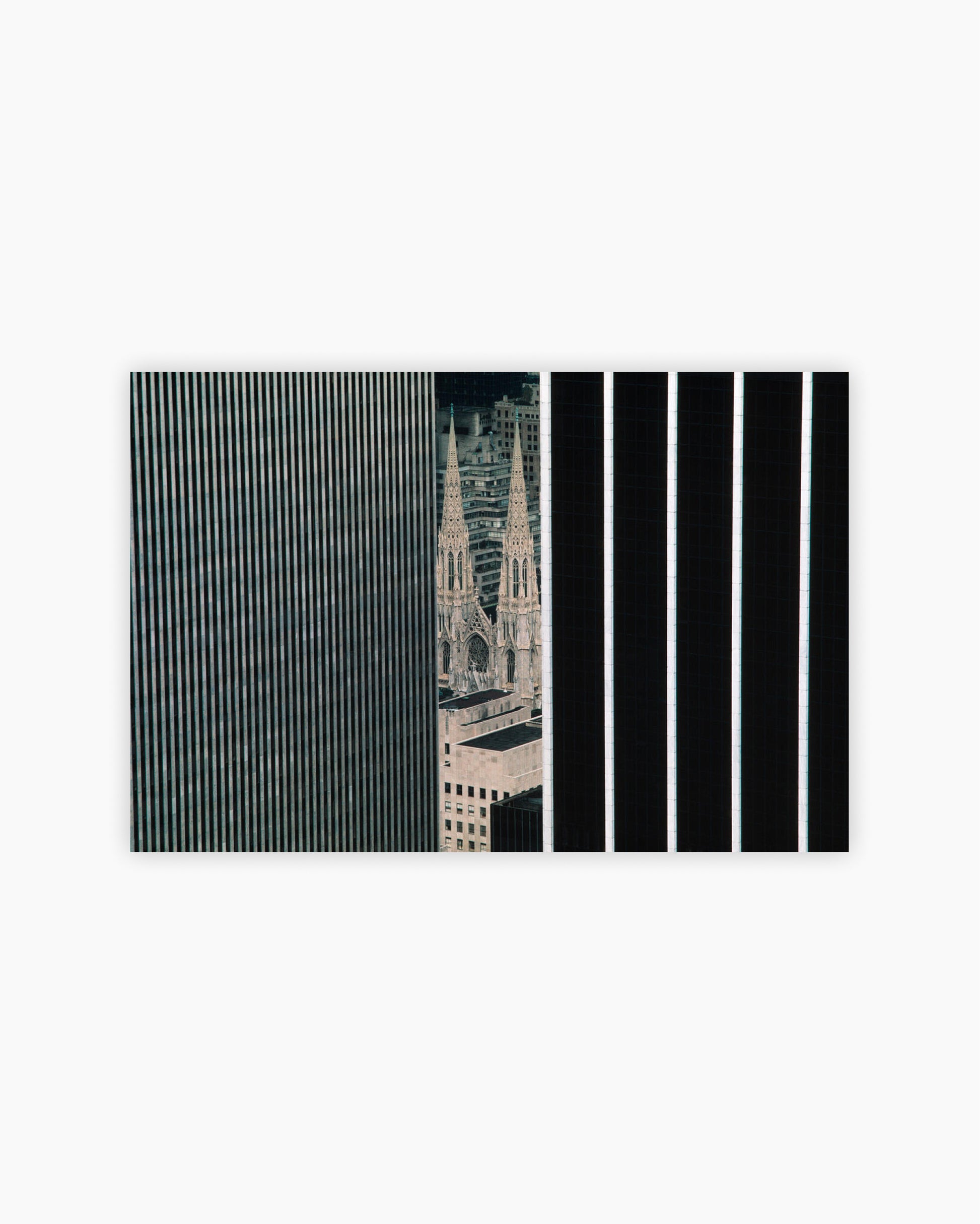 Fine Print: St. Patrick’s Cathedral seen through modern skyscrapers. New York City, 1983